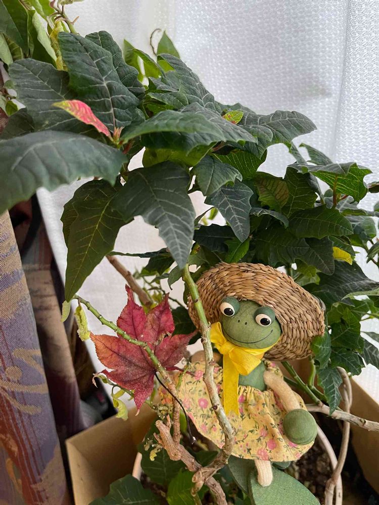 この子後輩からのプレゼントなんです💕可愛いよね〜❣️プリンセチアまだ片付けられませんよう(T ^ T)
