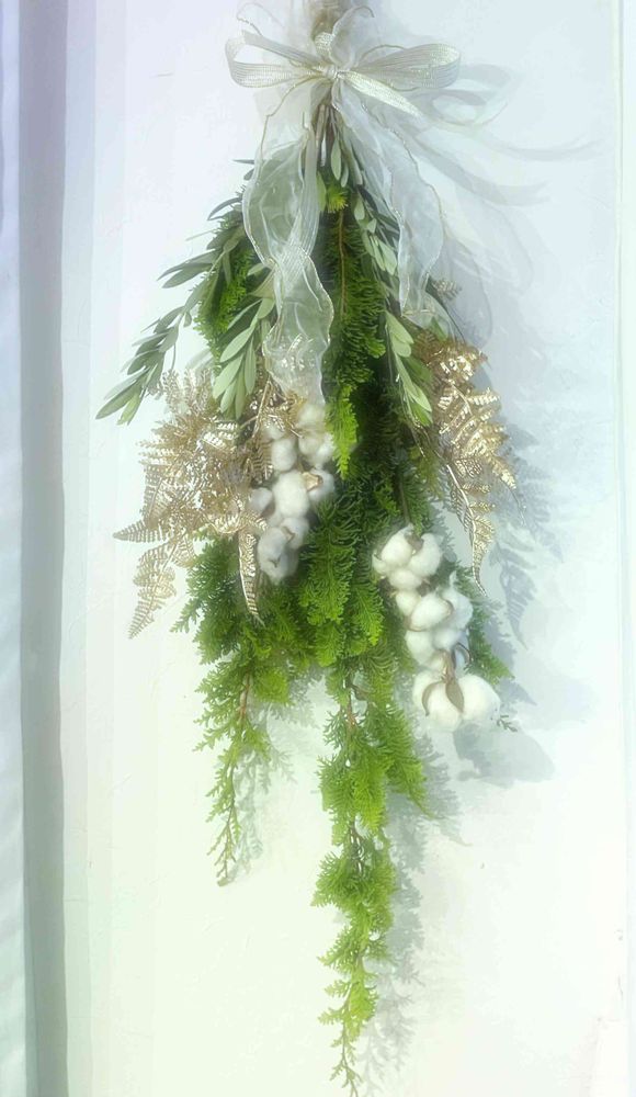 今年はスワッグ作ろうと 去年から考えていて まぁ、黄金ヒバは買ったけど あとは、うちのオリーブ ちょっときらせてもらって、綿や金色植物は ダイソーのやつ。ややシックで地味だけど 初めての割には良しとしよう ✨ 笑