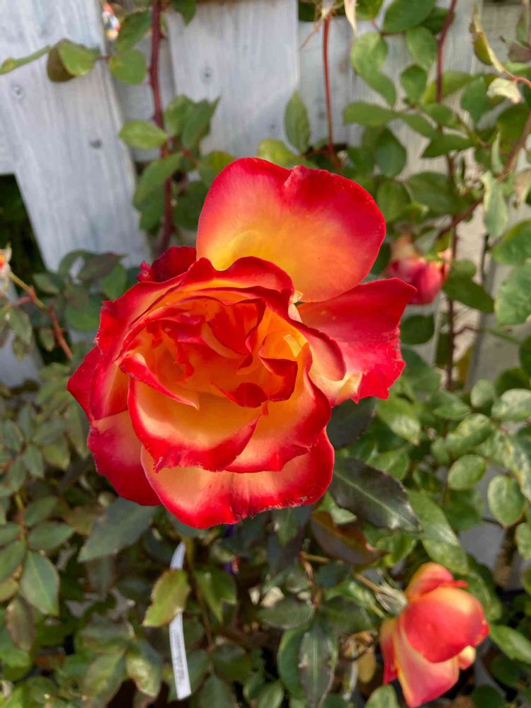 鮮やかな赤と黄色のバイカラーが、白いフェンスに映えていましたよ❣️