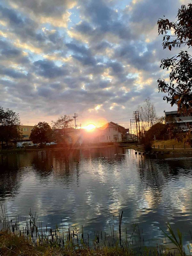 夕陽が沈み彩雲となり水面に写って綺麗になりました!
