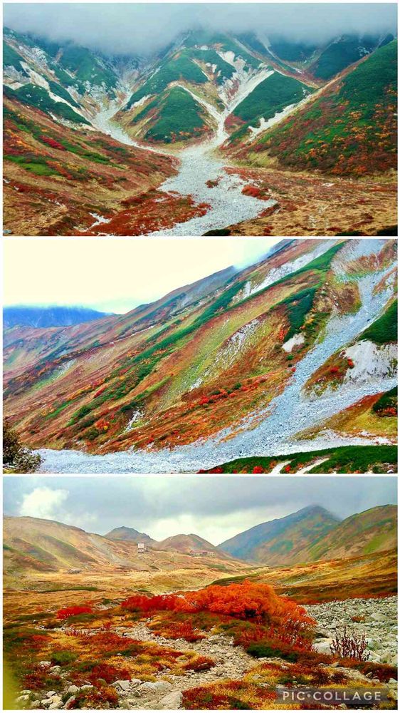 この時は室堂から雄山、富士ノ折立、真砂岳から別山に登ってる途中で足に痛みが出て、バックして犬走を下ってる途中からの風景。紅葉真っ盛りで超綺麗だった😍😆