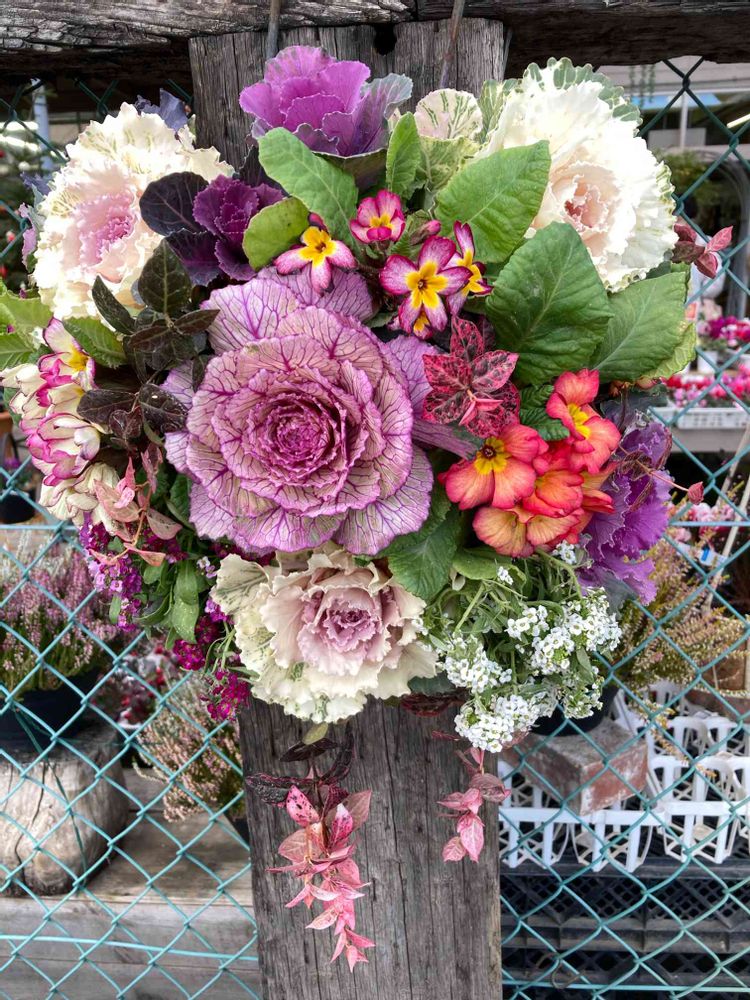 投稿したら数分後に、今日のお花になった葉牡丹‼️ 削除して再投稿してみますが、上手く今日のお花に入れて貰えるかしら?池田グリーンセンターさんには勝手に申し訳ありませんが、宣伝させてくださいませーとっても素敵な寄せ植えだらけで、いくら写真を撮って来ても、真似は出来ません😁