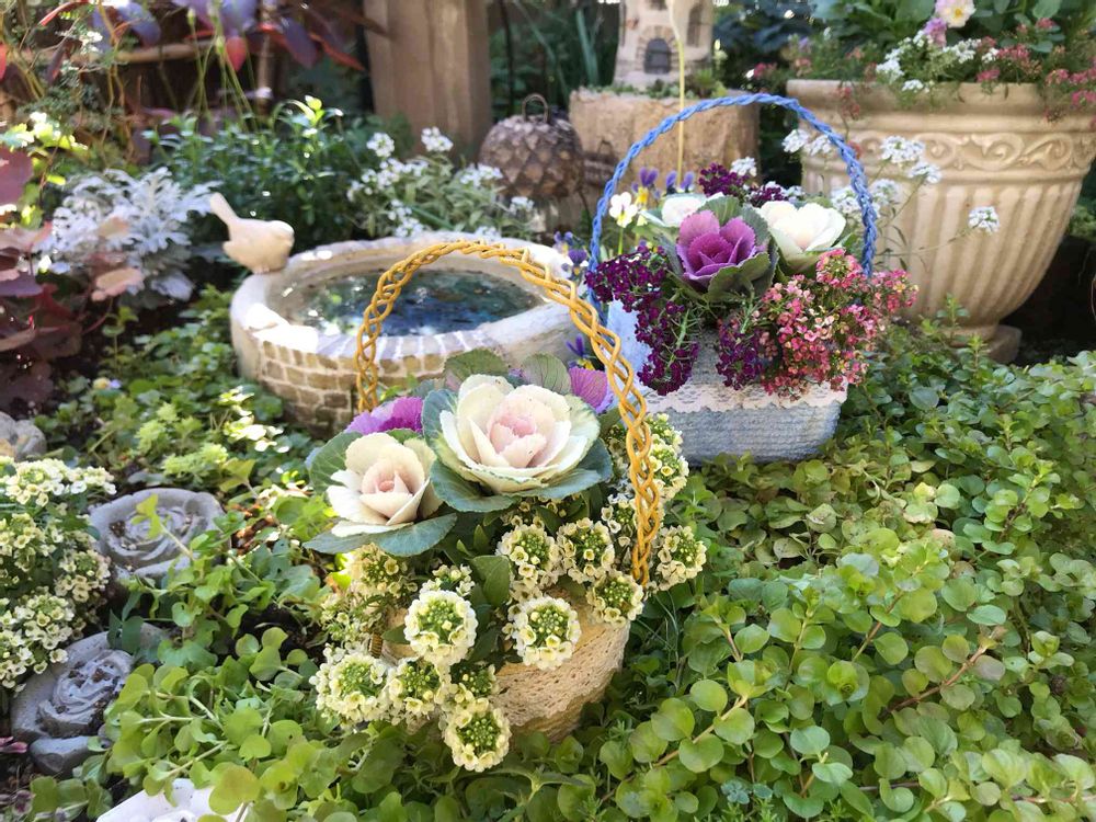 作り貯めていたモルタルデコのバスケットにハボタンを寄せてみたら……あら♡……可愛い(ᵒ̴̷͈ᗨᵒ̴̶̷͈ )✧