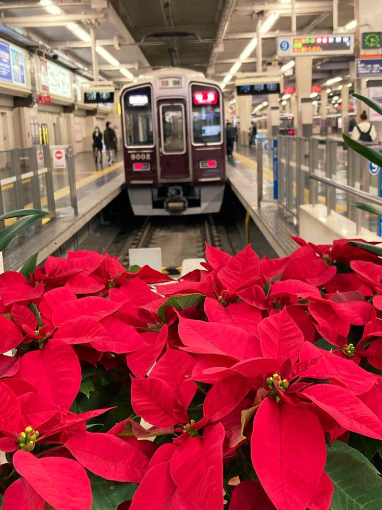 始発駅だからスペースあるんですが、阪急電鉄 花あしらい 頑張ってくれてます!