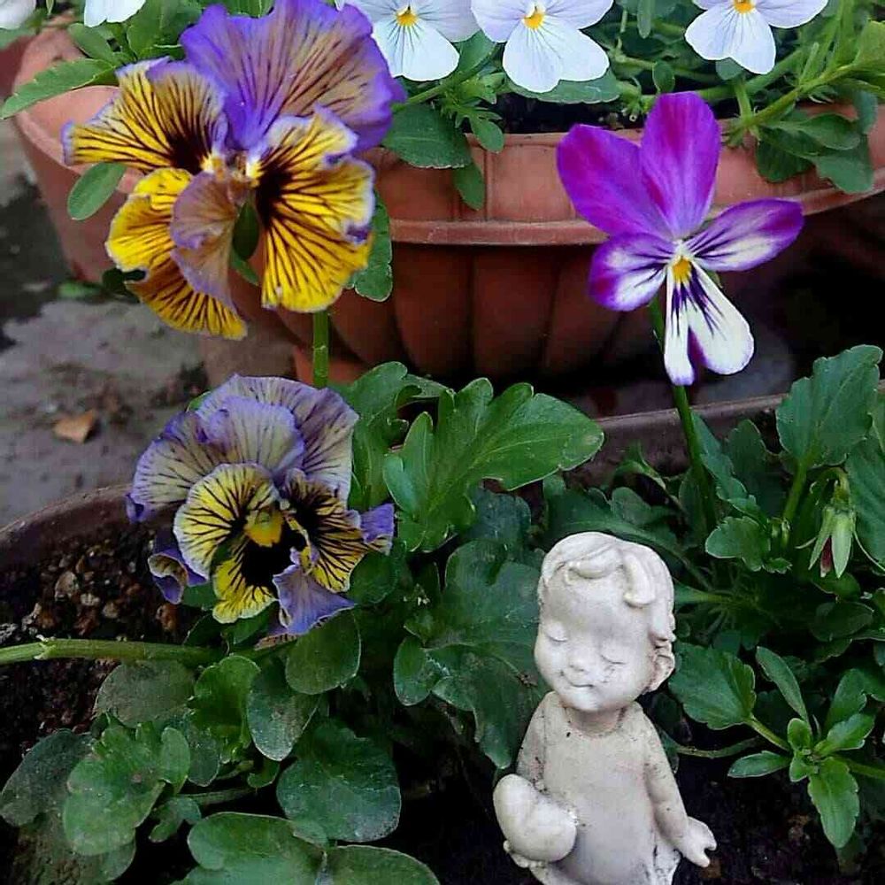 →右)ラビットビオラ、妹が可愛いこ🐰いたよ!と連れてきた100円ポット。株が大きくなったら独立させようかな?