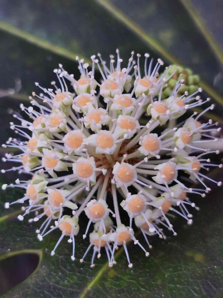 ヤツデの花が満開です。💗