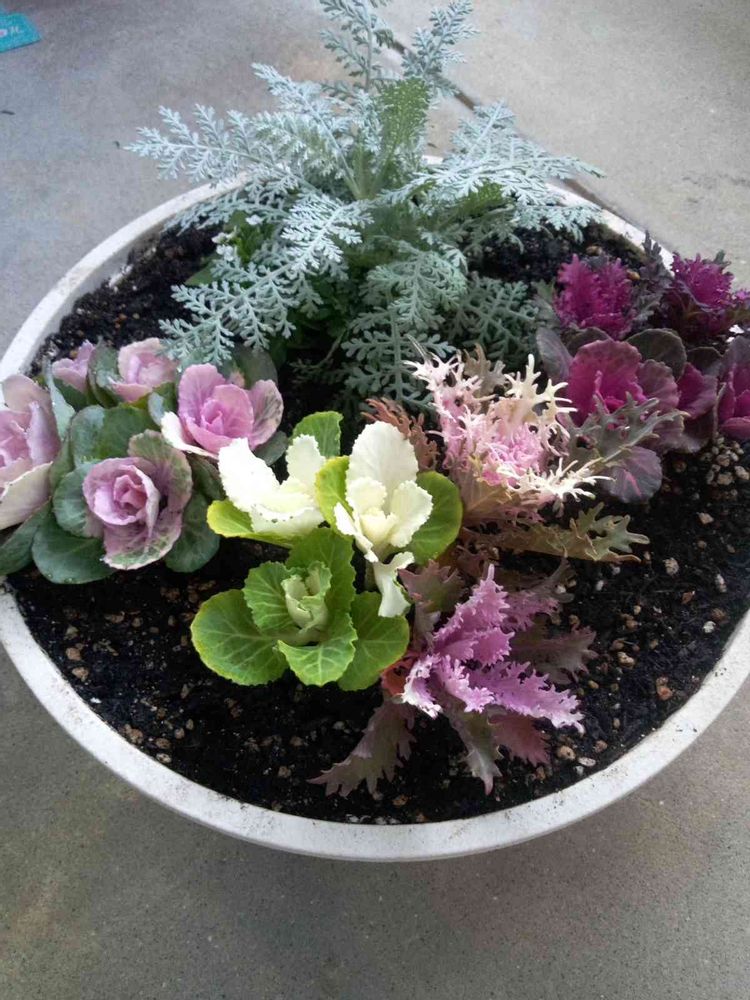 いろんな種類の葉牡丹にシルバーレースが加わっていい感じになってるね😆👍