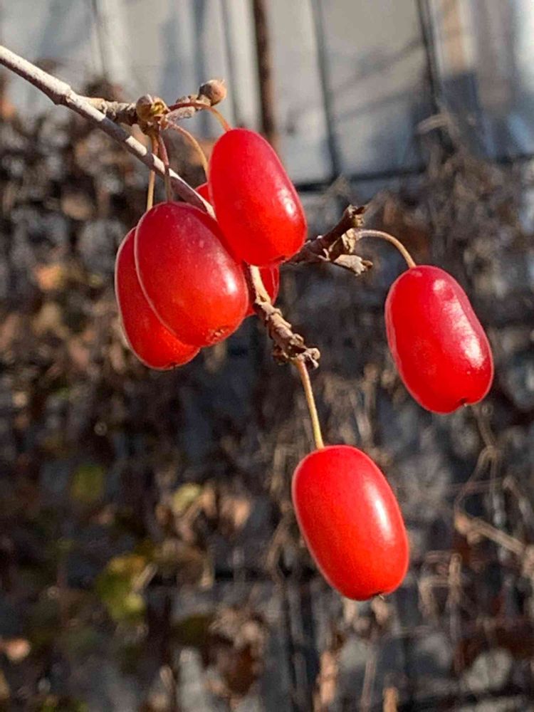 サンシュユは強いですね、霜にあってもこんなに素敵な色を保てるなんて😊