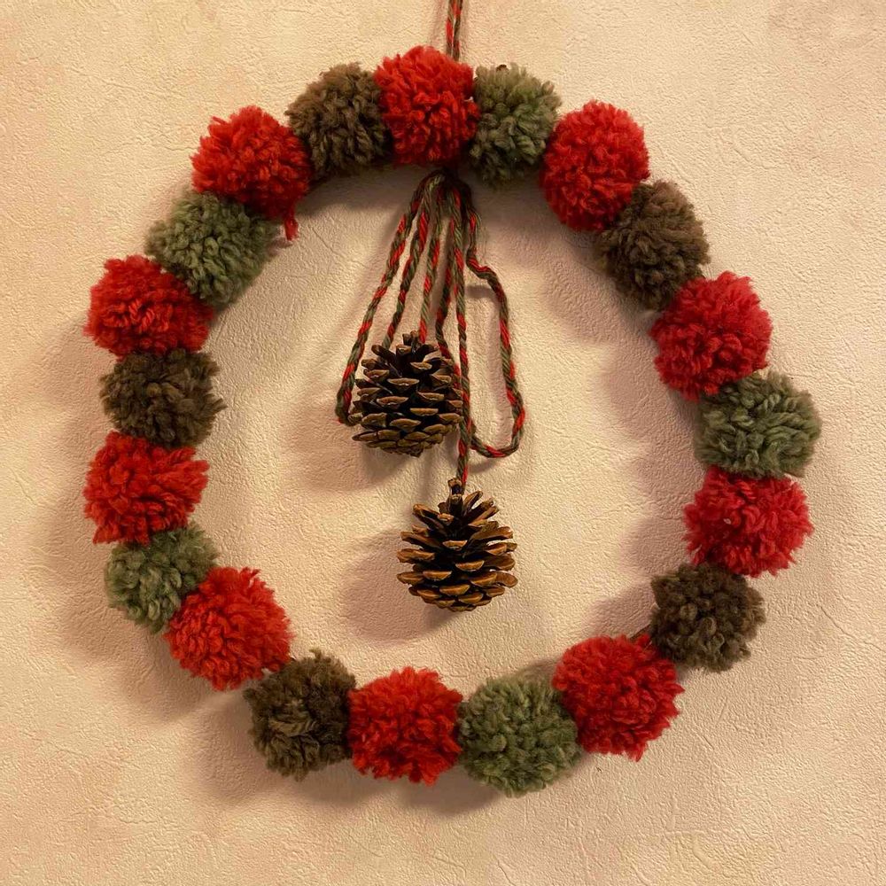 ポンポンのリース、温かみがあって良いですね~ほっこりします(◍´ω`◍)