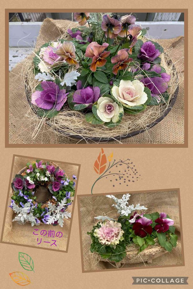 今日のお花は葉牡丹という事で水苔に変えた前回リースと少し前に作った寄せ植えを投稿させていただきました😄