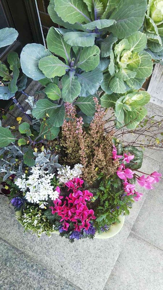 昨年、寄せ植えにしていた葉牡丹を 花壇に植えておきました。