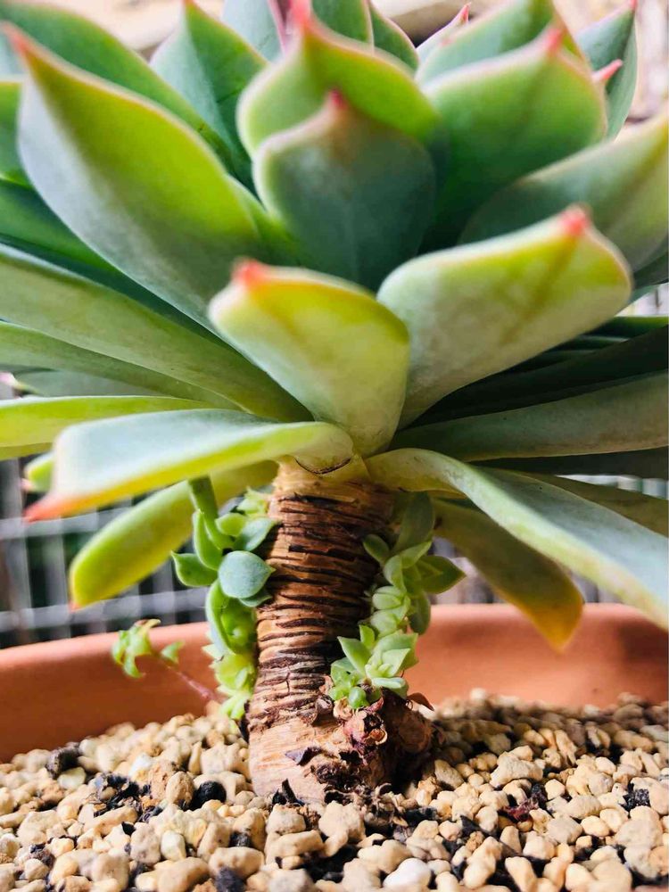 先日一番下に付いていた子株の裏側に貝殻虫がいっぱい付いていまして💦、全部を駆除するのは無理と判断して、カットしましたが、まだまだ油断は禁物と覗き込んでます🔎