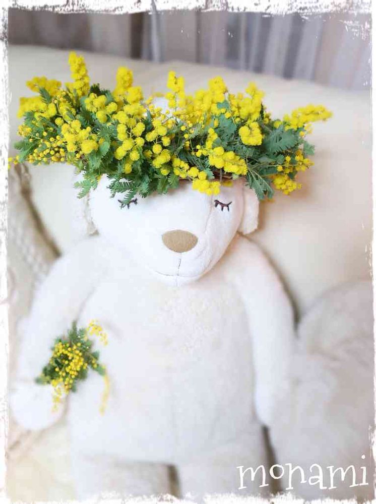 可愛いpic😍ミモザのリースとってもよく似合ってます。癒される〜❤️❤️