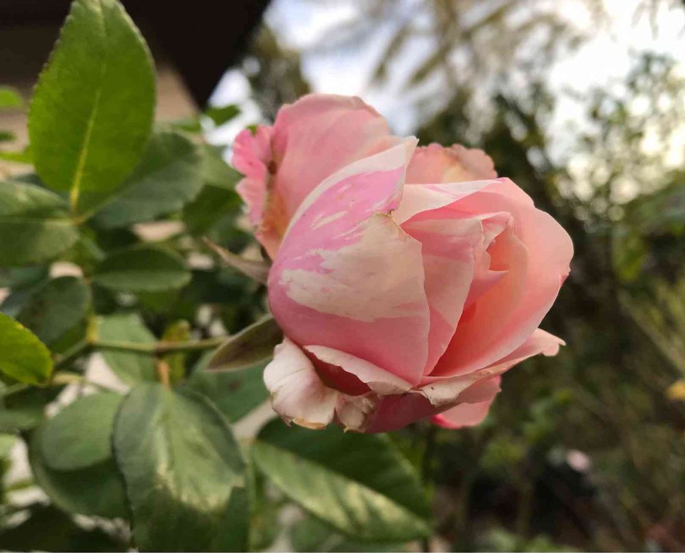 今日の3枚目はビェドュー(デルバール)🌹ピンクな絞りが開きかけの時から分かりますね✨✨今蕾が沢山あるのですが、開いてくれると良いな😊