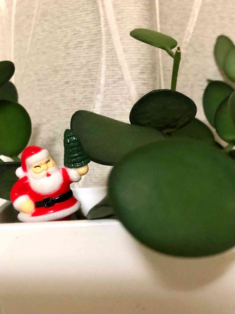 いつもの多肉にちょっとサンタをあしらうだけで、