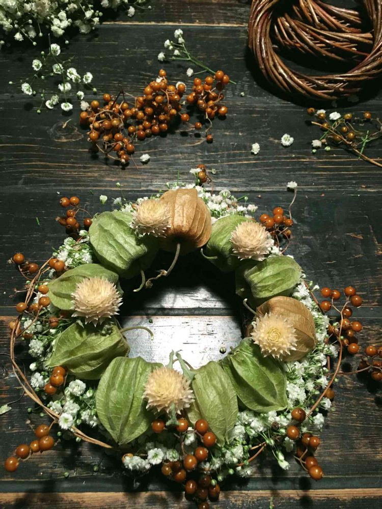 カスミソウのリースもかわいいてすね💞ドライフラワーを使用しているのですか?