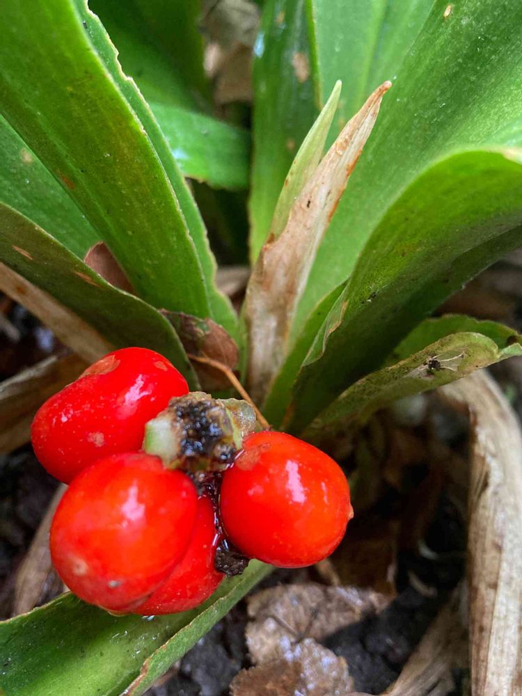 うちのオモトは地植えで何も手入れしてないからか、あまり綺麗な状態にはなりません。でも、ピカピカキラキラ✨かわいいです。