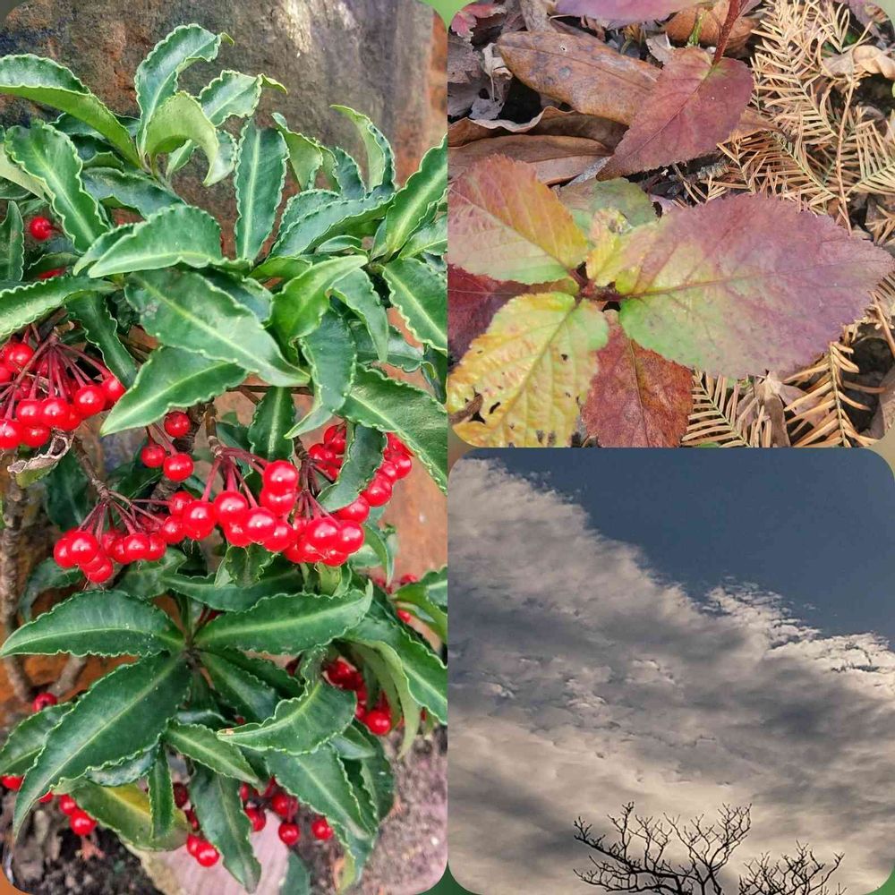 昨日は雲が面白かった😊です。万両の実もキレイ😍
