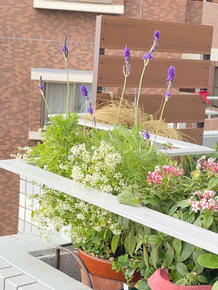 バルコニー/ベランダ,レースラベンダー,ユーホルビア ダイヤモンドフロストの投稿画像