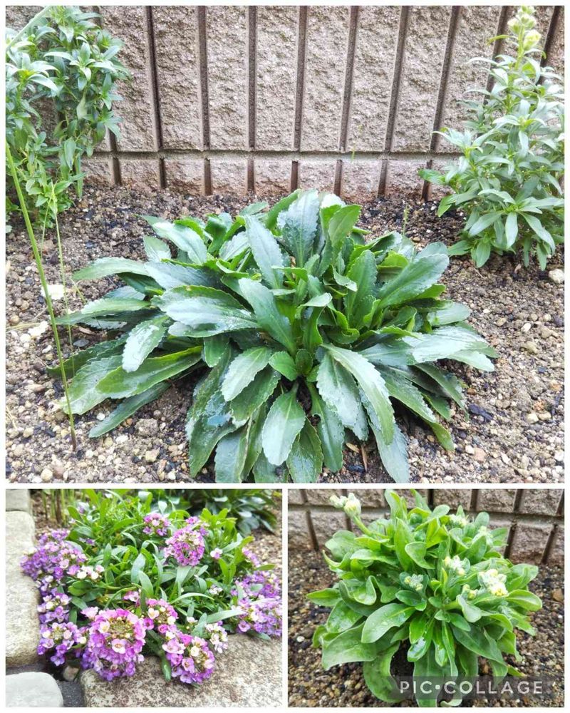 左下はこぼれ種からのスイートアリッサム。この子も鉢植えの子よりゆっくりだけどしっかりなってきました🍀