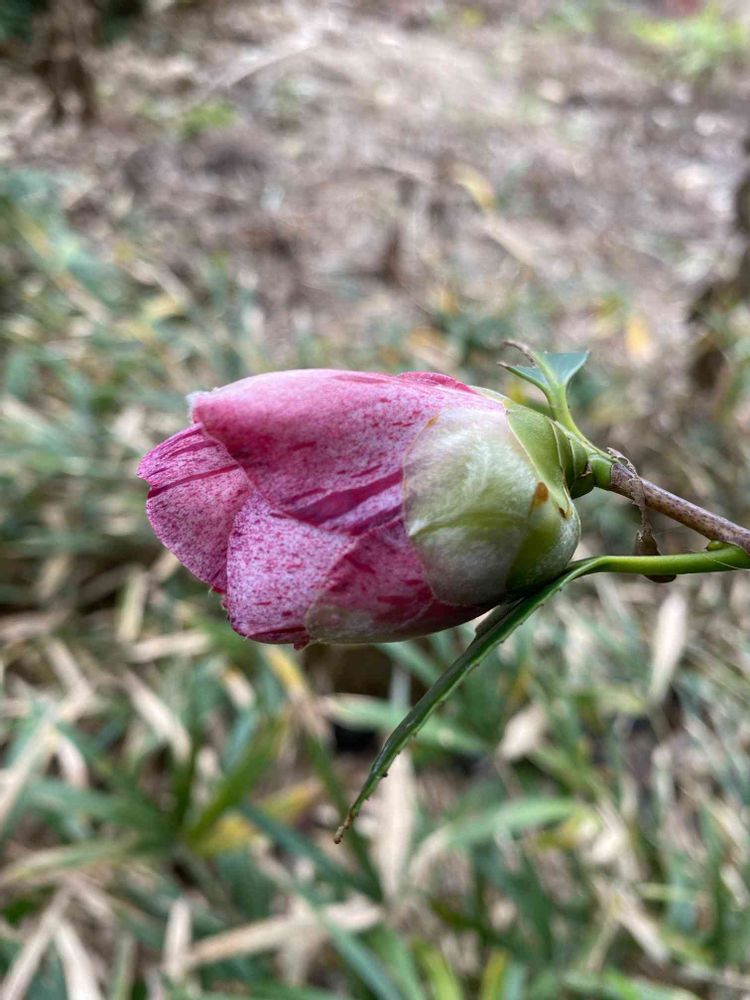 この椿は赤に白い斑が入ります。時々真っ赤な椿もあるのですよ。可愛いです。