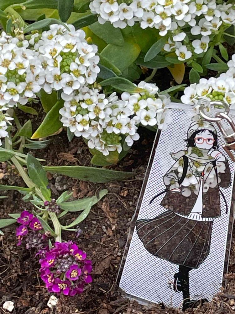 帽子と上着の上のアリッサムが素敵ですꔛ♡