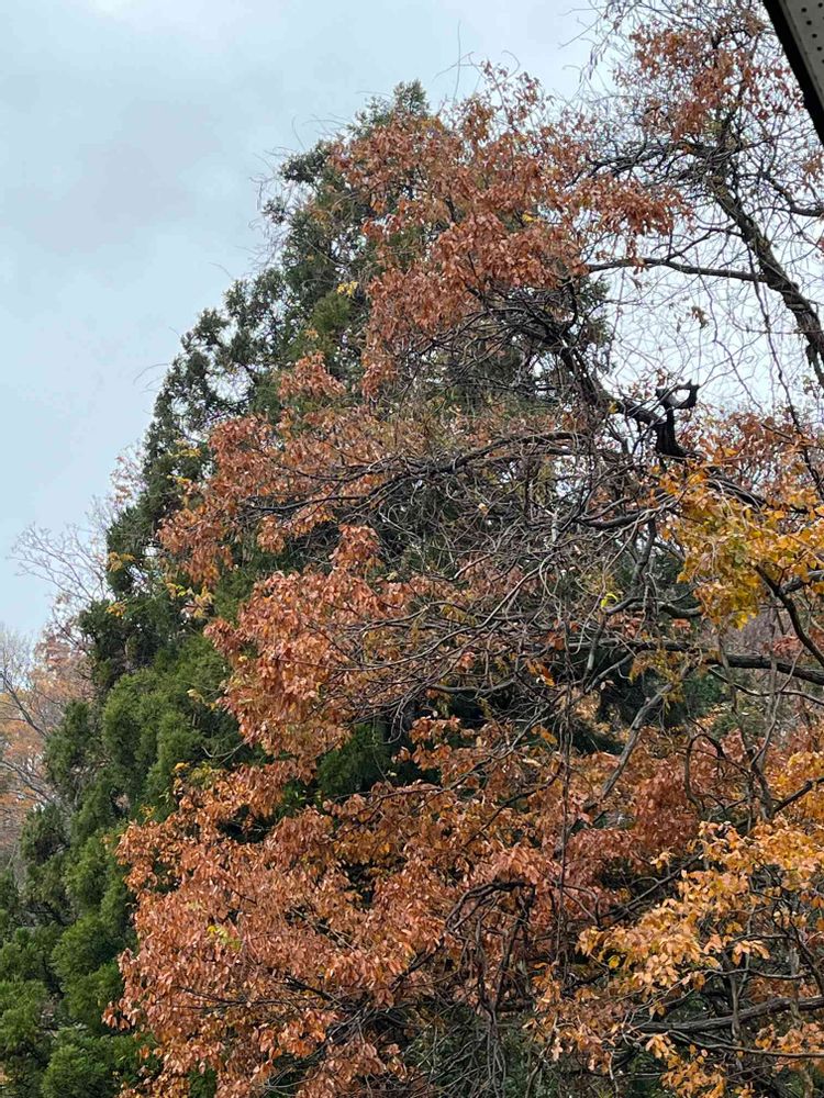 クヌギ:ブナ科コナラ属の落葉高木 紅葉が美しく緑色から黄変して茶色へと変色する 完全な枯葉になってもなかなか落ちず2月位迄枝に付いている事が多いそうです