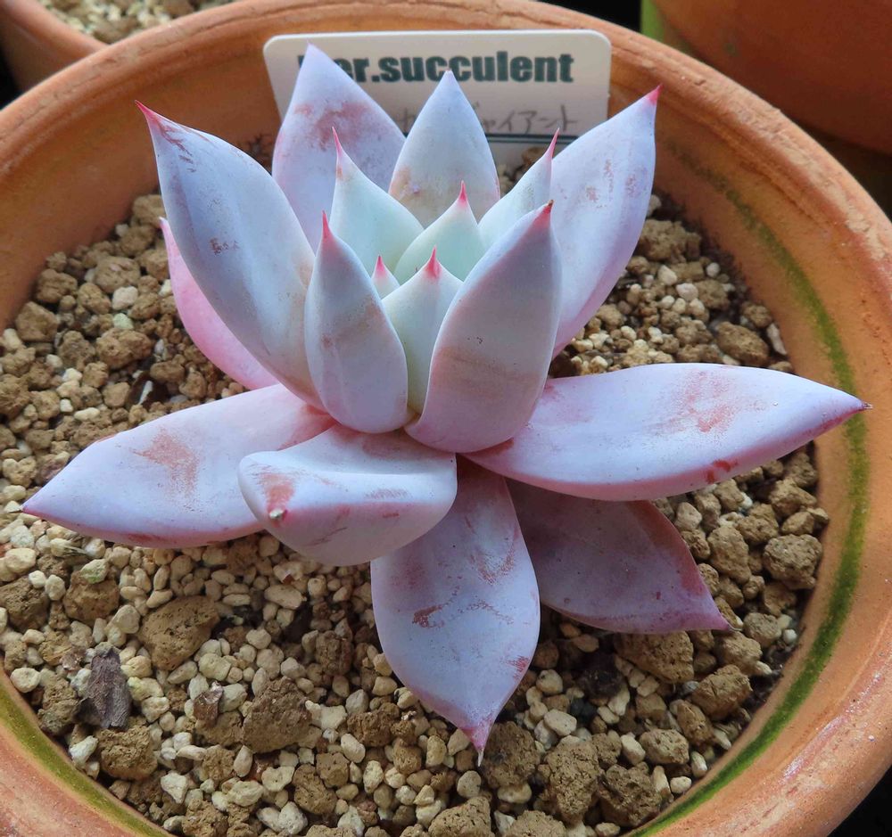 中心部が白さを増してきたメキシカンジャイアント。ピンクの爪と白い粉の模様もちょっとしたアクセント。