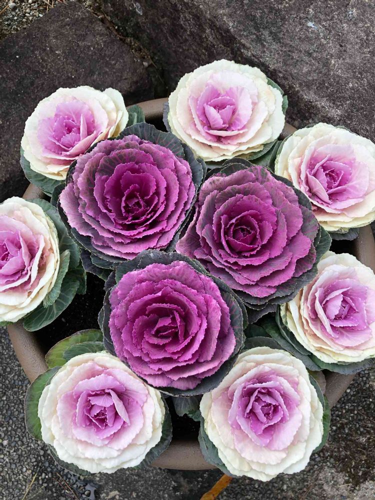 セットで安く手に入ったので今日お迎えして、葉ボタンだけの寄せ植え初めてやってみました💜🤗