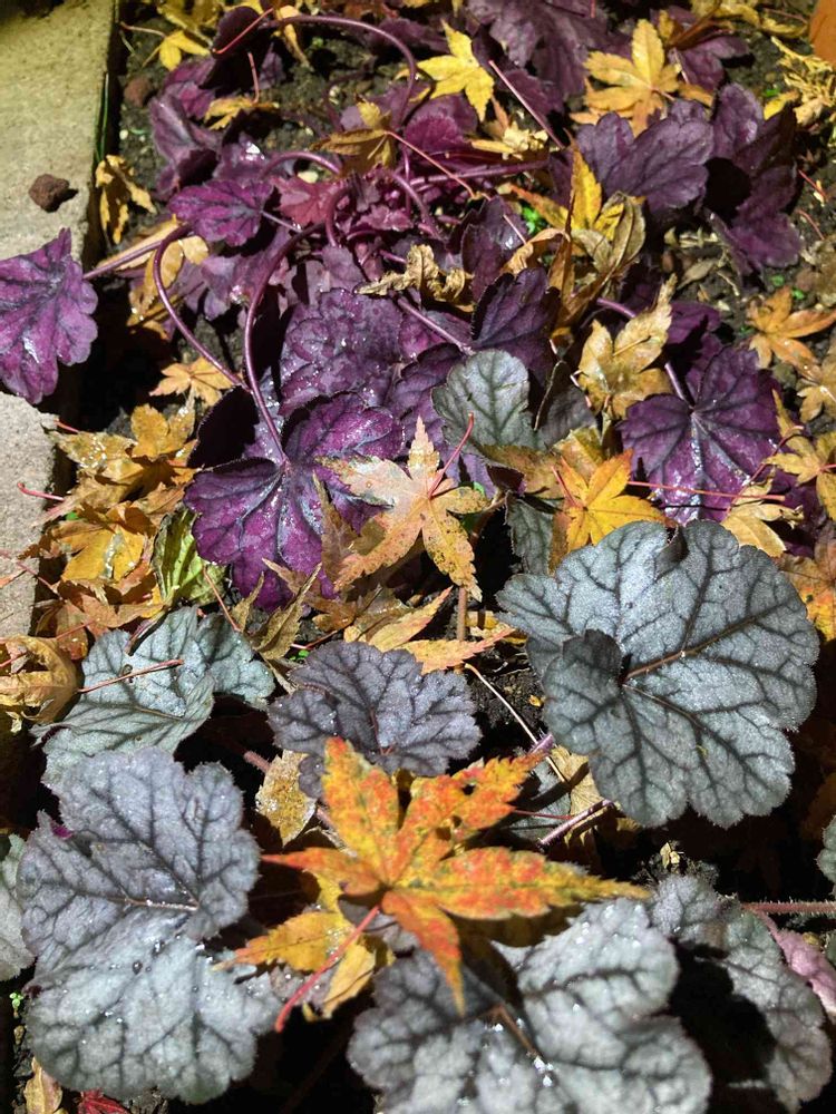 ヒューケラ畑にもハラハラと🍁