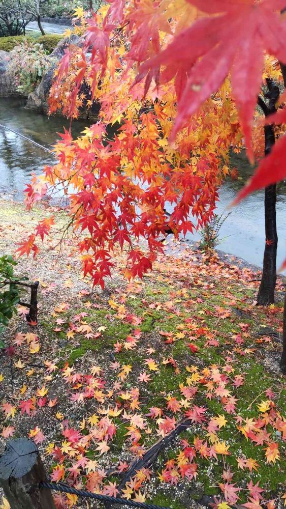 木に残っているモミジも綺麗でしたが、地面に落ちている葉っぱが情緒があって美しかったです🍁