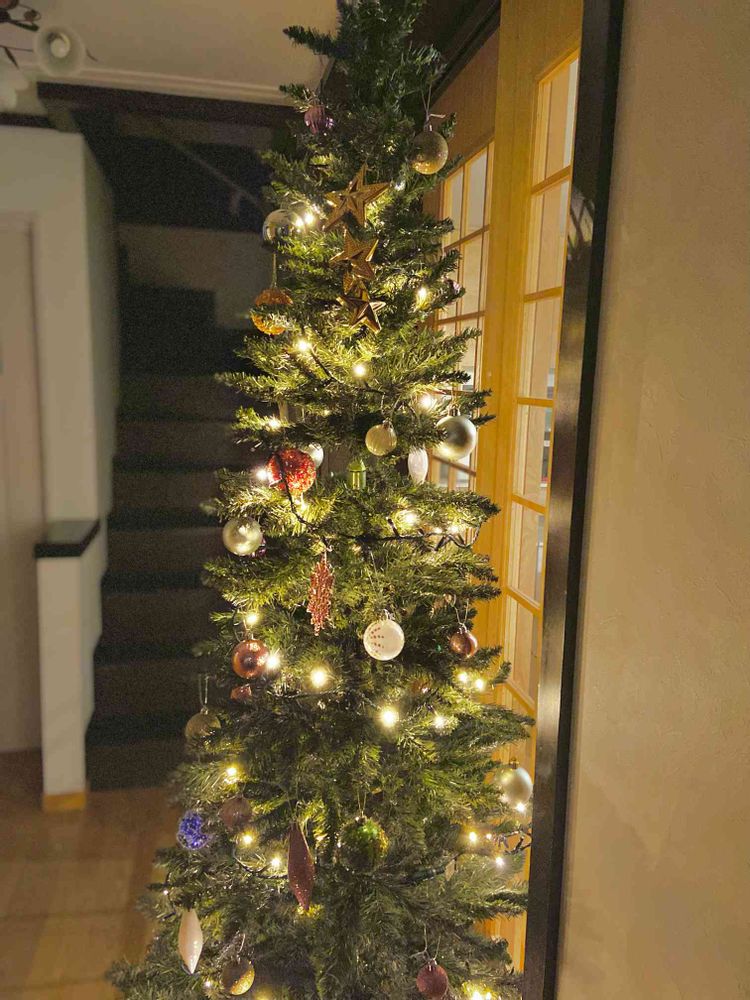 子供が小さかった頃に細くて背が高いツリーを探し回って買ったんです🎄