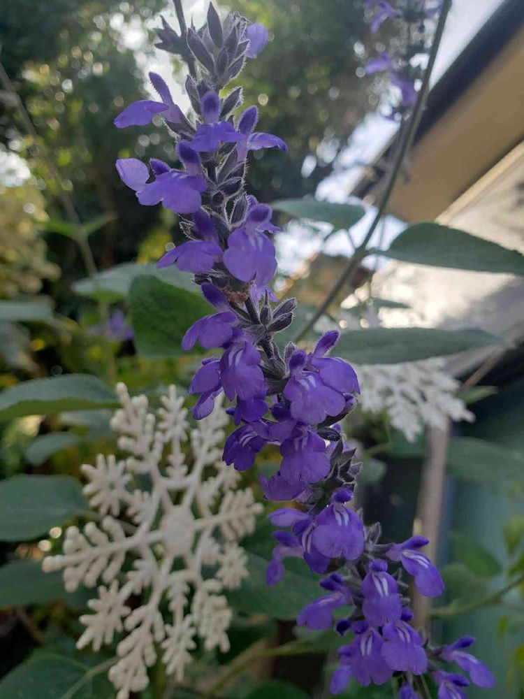 さんへ 狭い庭の20%位がハーブで殆んど緑の状態。オマケニ花が咲いたらラッキーと。このセージは背丈が私位あり この所毎年花が咲き⤴️⤴️