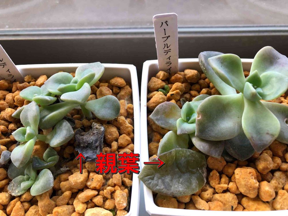 11月に投稿した葉挿しからのパープルディライトですが、いよいよ親葉が朽ち果てて親離れとなります😂💦これからは自分でしっかり生きて行くんだよ😊✨わが家の親離れはなかなかできません😥💦💦