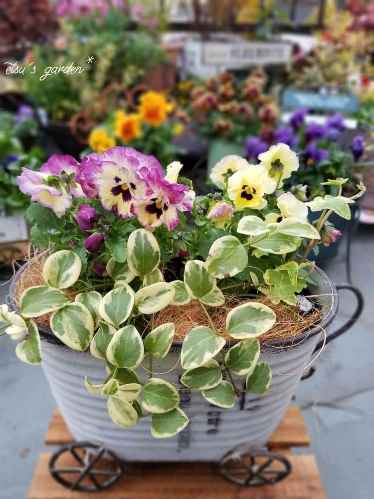 Etsuさんのツルニチニチソウ,ヘデラ,ビオラ アールヌーボーの投稿画像