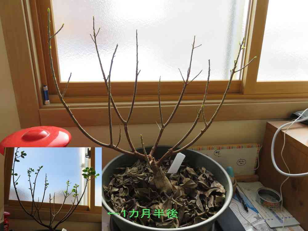 かなり乾燥気味(悪く言えばほったらかし・・・)にしていたら葉がぽろぽろ落ちてきたので手で葉を全部落としました。軽くカサカサするだけで落ちました。