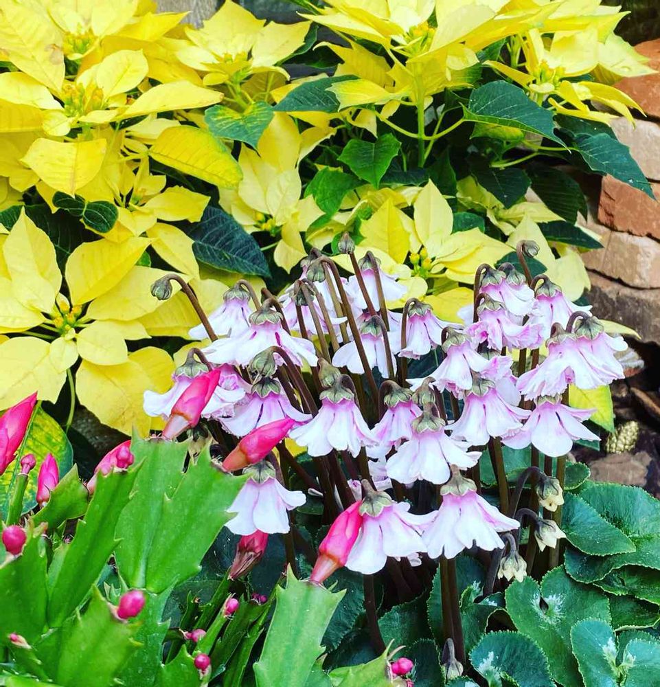 🎄🎁🎅🌟黄色いポインセチアとデンマークカクタス、フリフリのシクラメン