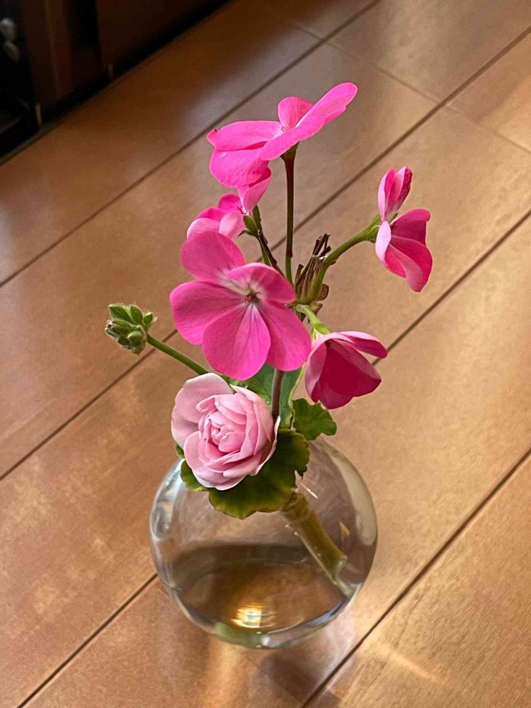 いけておいたゼラニュームとミニバラが咲きました🌹👍😊
