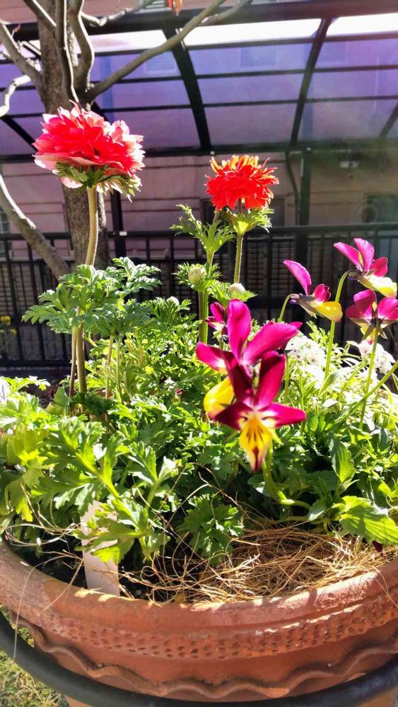 今日は、暑いくらいに〜ʘ‿ʘ🎶〜🌼アネモネが、開いて〜去年のよりも〜小さいけど〜可愛く咲いています〜( ´◡‿ゝ◡`)💝