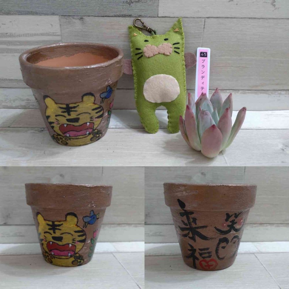 PANDAちゃんからの、トラ🐯のリメ鉢(2.5号鉢)
