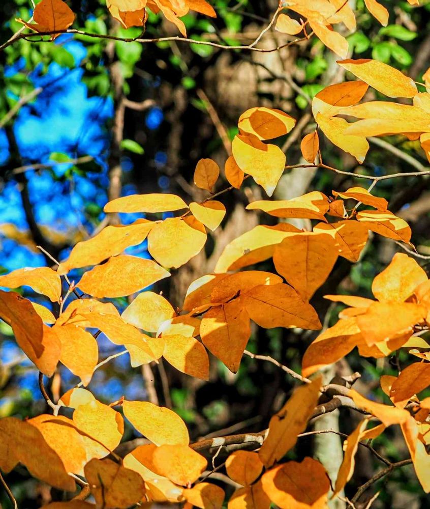 オレンジ色っぽく紅葉するクスノキ科の落葉樹です。雨上がりの公園の青空の中、紅葉が映えてました🍂✨キラッ。