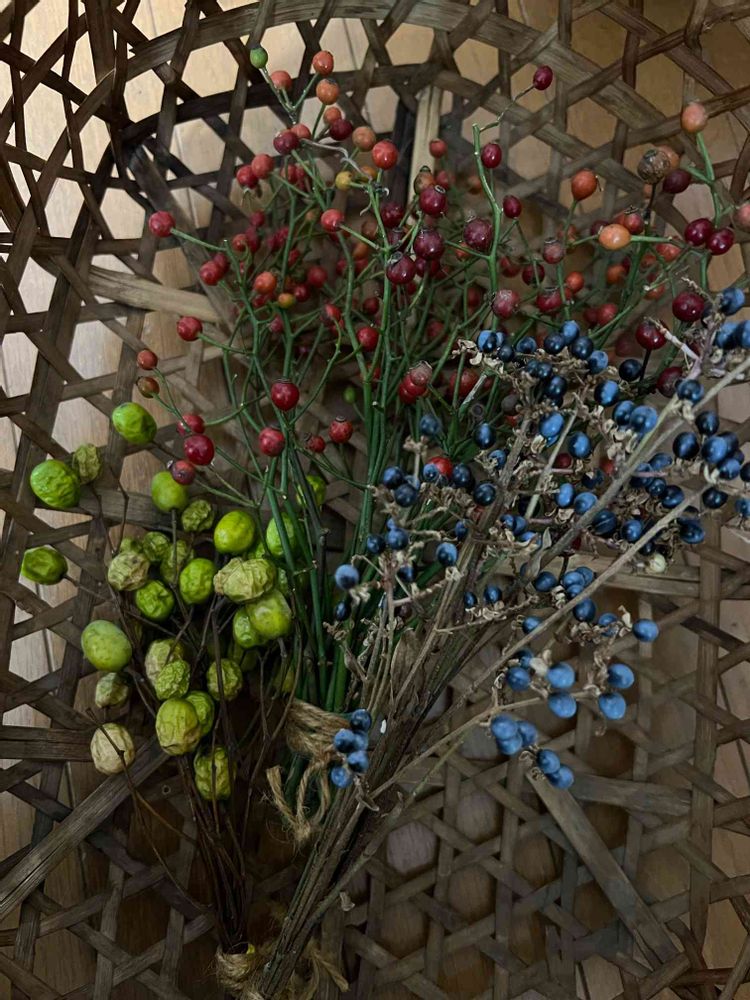さん、そうですよね。お花屋さんでも木の実、購入しました🥰おっしゃるようにサンキライの赤い実の枝もそれだけでリースにしました❤️♥️