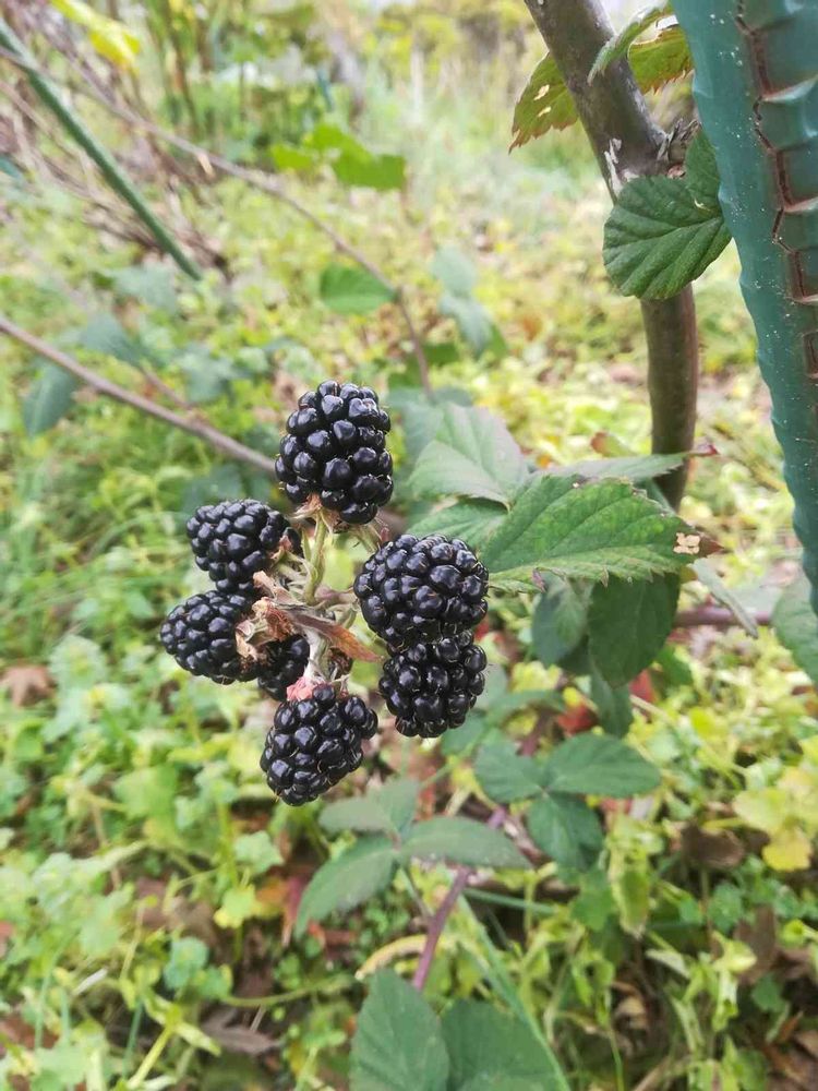 どうしたことか、今ごろブラックベリー(品種:ソーンフリー)の実がなりました。
