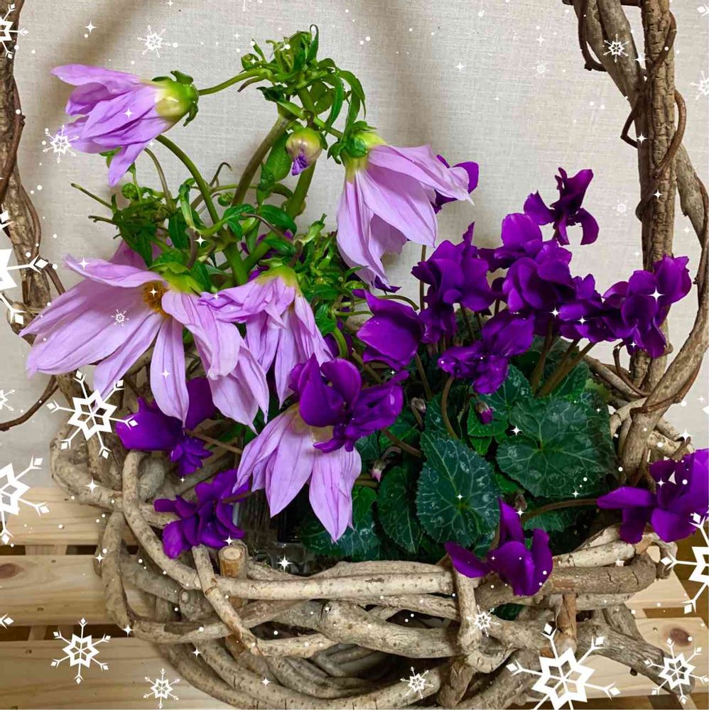 皇帝ダリアがお母さんで、枝垂れシクラメンが👧のようです。💕