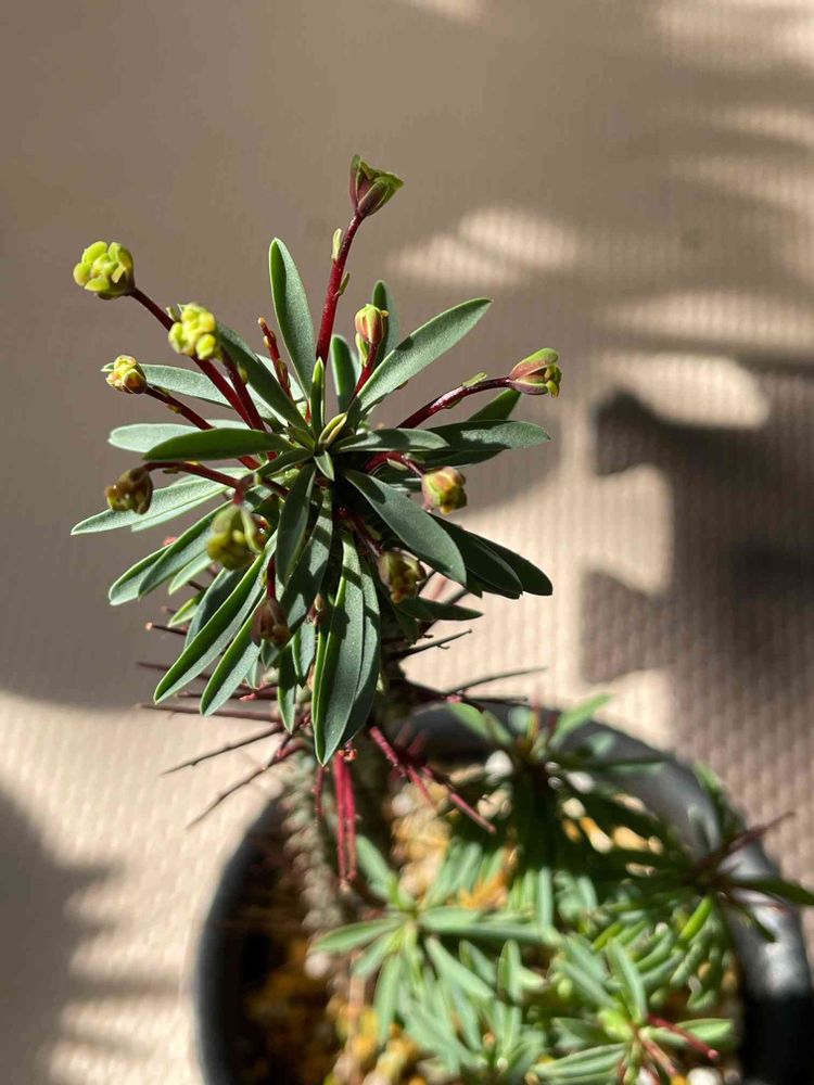 ユーフォルビア ロリカータに今年も花芽が付きました。咲いてるかよくわかりませんが(^^)