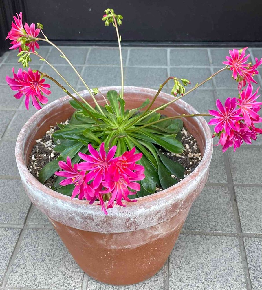 今日の写真📷は、レウィシアちゃん🌸 3鉢あるうちの濃いピンク。