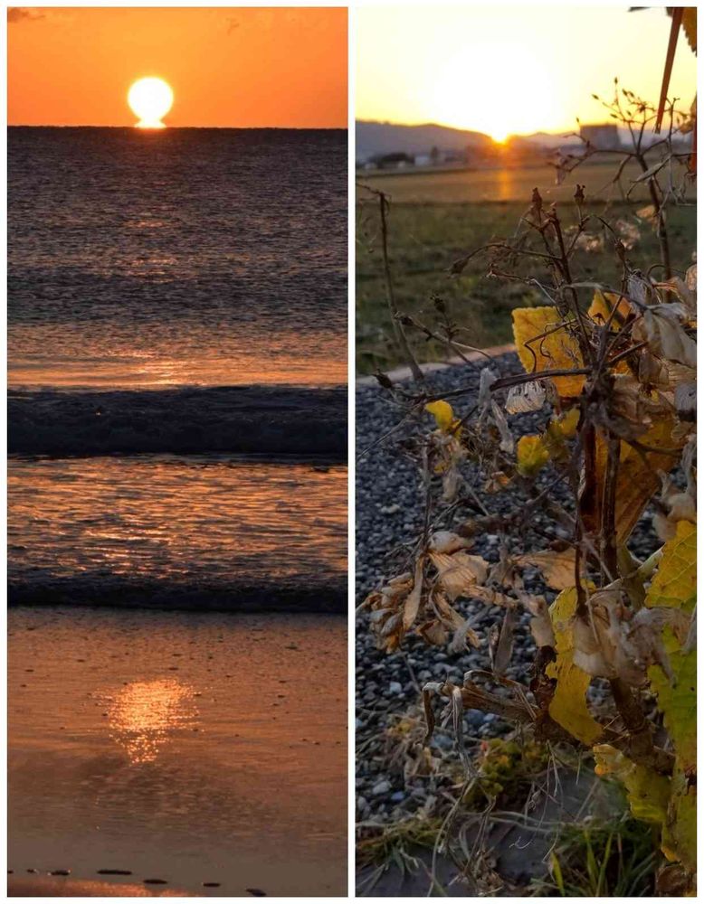 右が、夕日🌇とアジサイの枯れ姿(どなたが自然のドライフラワーと言われてました)