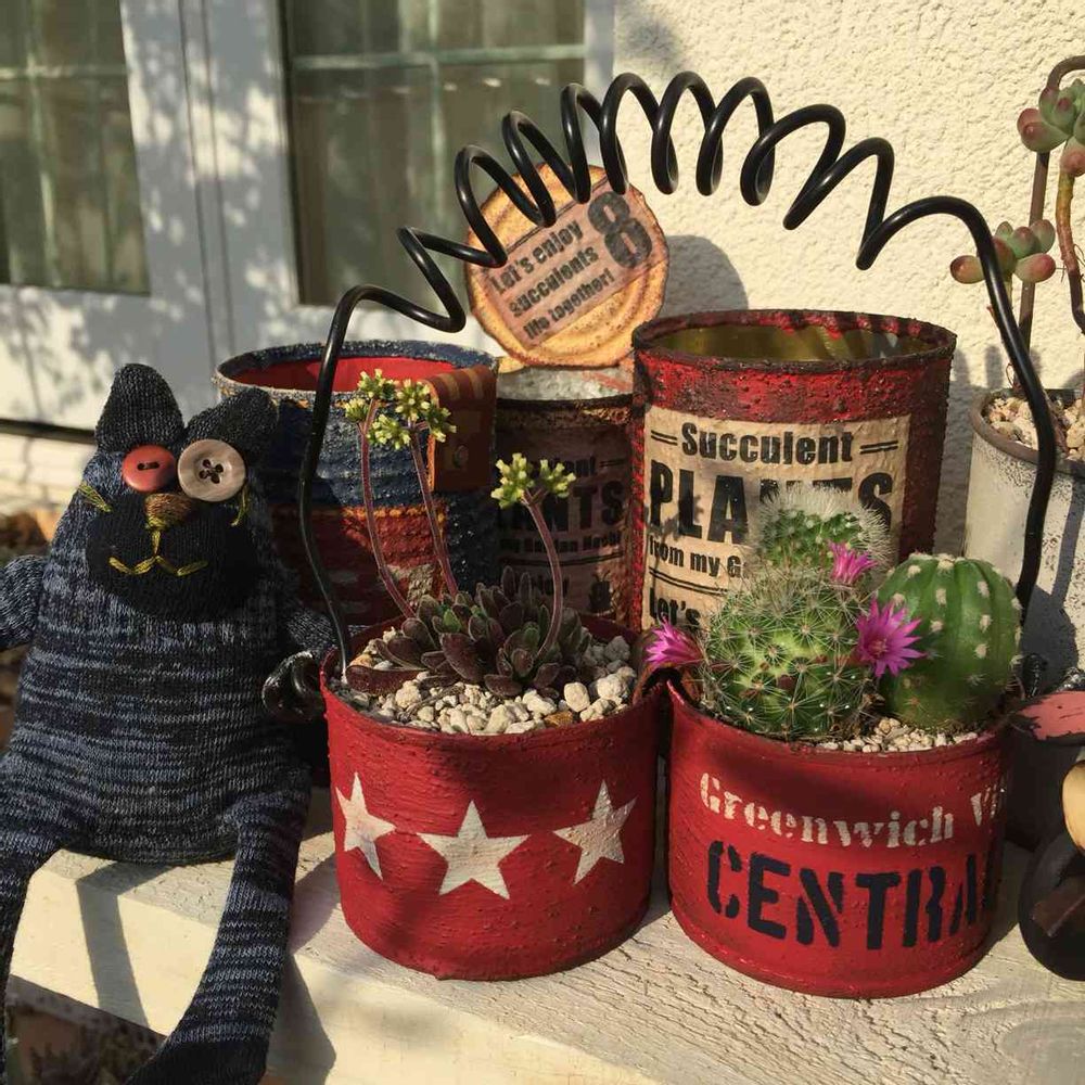 赤色リメ缶は🌵が似合うって