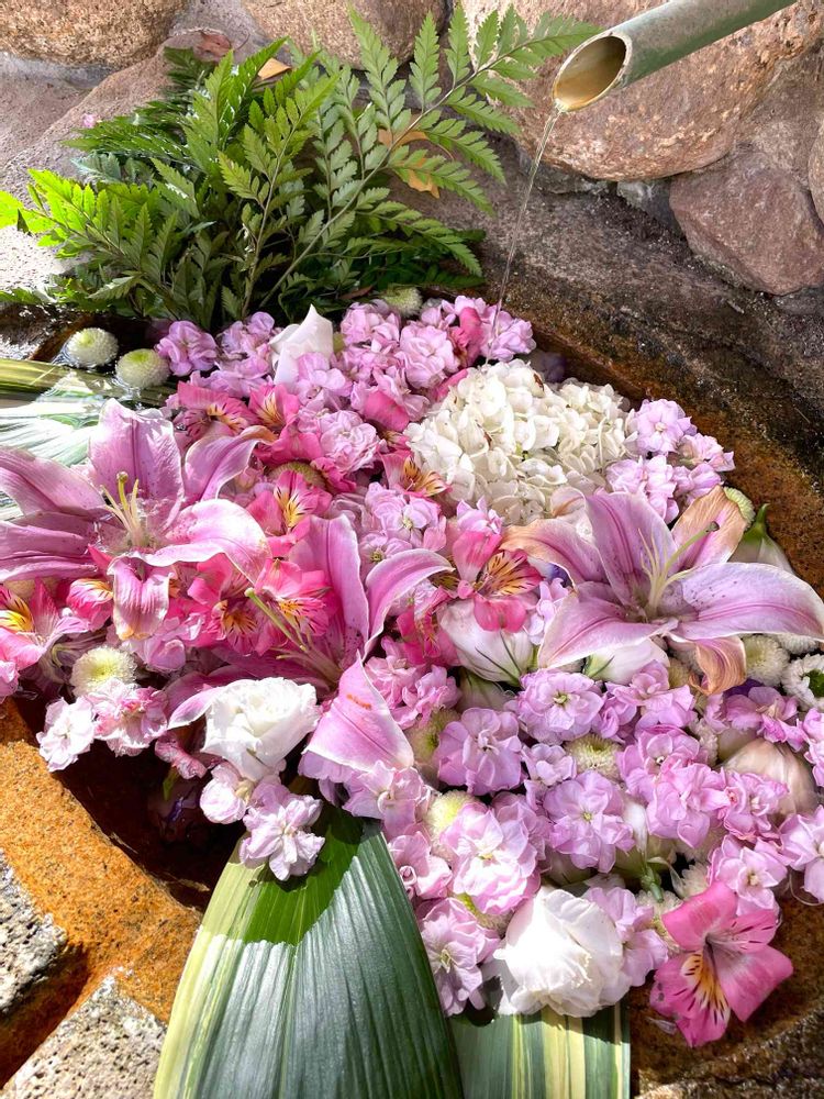 洋風の花手水、素敵ですよね〜🌸