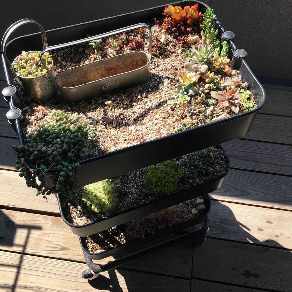 IKEAワゴンプランター、コロコロと日向に移動です☀️